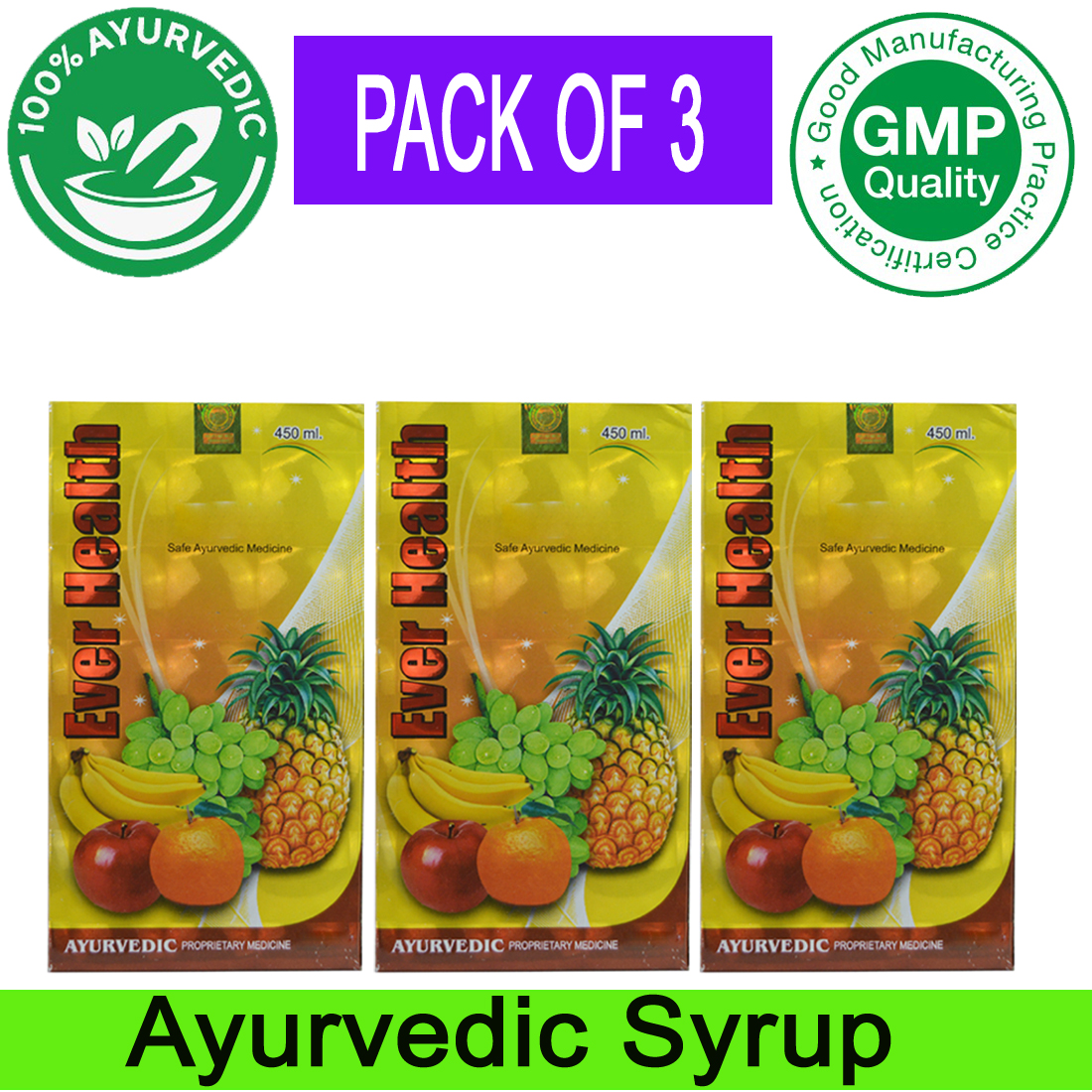 Dr. Biswas Ever Health Original 100% Natural Ayurvedic Tonic For Strong Immunity 450 Ml Pack of 3 (Copy)