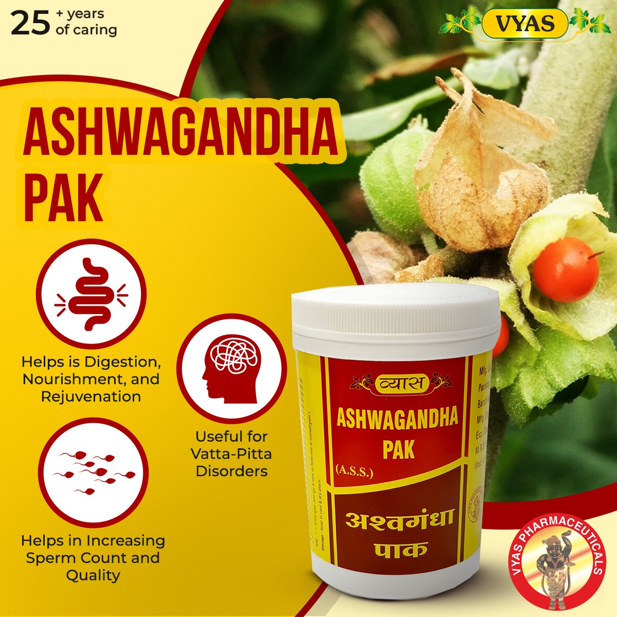 - Rejuvenating Tonic: Vyas Ashwagandha Pak acts as a potent rejuvenating tonic that helps restore vitality and energy levels.